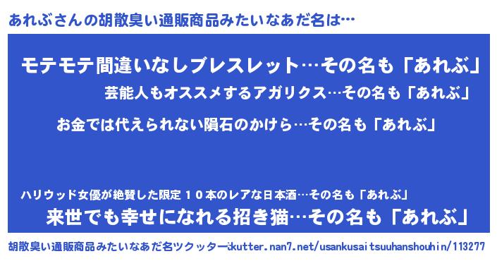 | 欧米人風あだ名 | 『ダニエルあれぶ』『マイケルあれぶ』 |