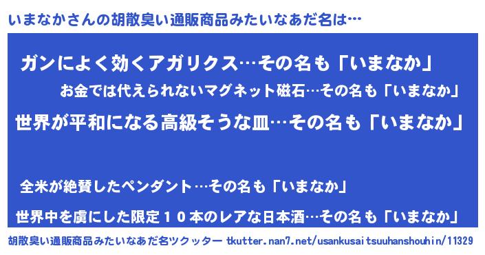 | 肩書あだ名 | 『いまなか国家主席』『いまなか閣下』 |