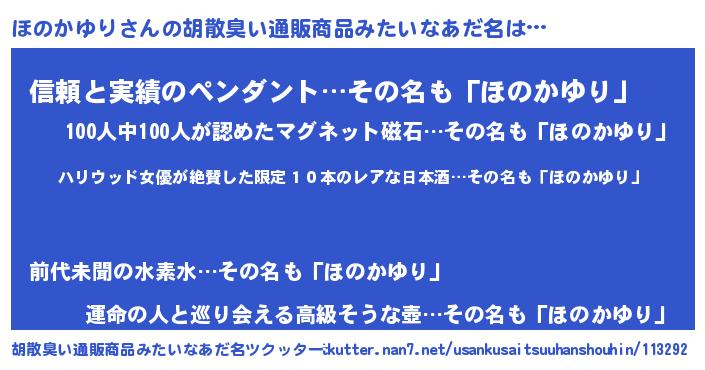 | 意味不明あだ名 | 『住所不定無職ほのかゆり(68歳)』 |