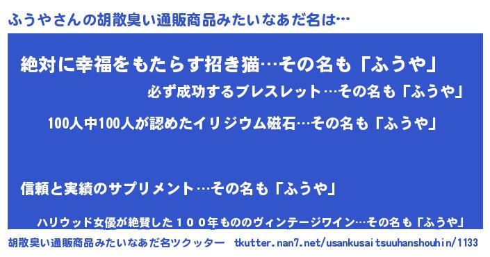 | 欧米人風あだ名 | 『ダニエルふうや』『ダルビッシュふうや』 |