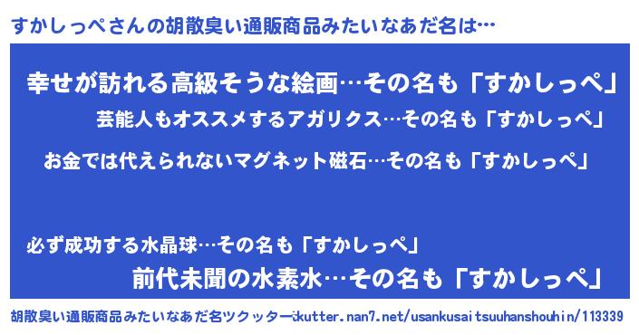 | 男性向けラノベタイトル風あだ名 | 『はたらくすかしっぺさま!』 |
