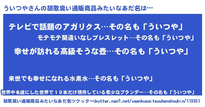 | 肩書あだ名 | 『ういつや大尉』『ういつや大統領』 |