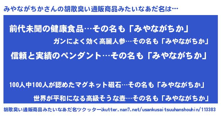 | ヘコむあだ名 | 『みやっちょ』『みやながちか(苦笑)』 |