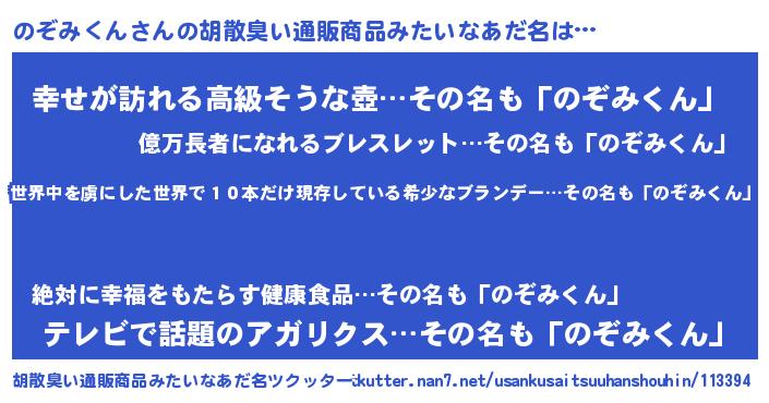 | 意味不明あだ名 | 『住所不定無職のぞみくん(81歳)』 |