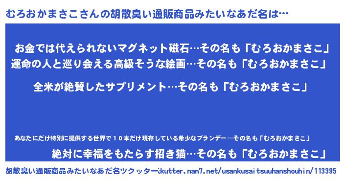 | ヘコむあだ名 | 『むろを』『むろおかまさこ(笑)』 |