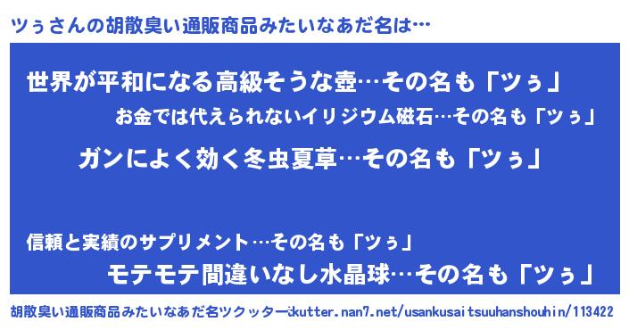 | 意味不明あだ名 | 『自称ツぅ』『なめこ科ツぅ属』 |