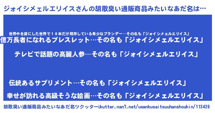 | 意味不明あだ名 | 『自称ジォイシメェルエリイス』 |