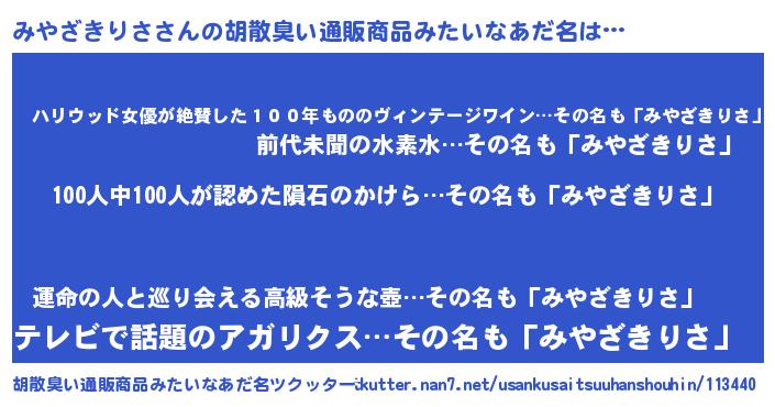 | ヘコむあだ名 | 『みやざきりさ(震え声)』『牛乳』 |