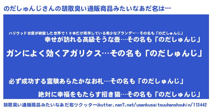 | 意味不明あだ名 | 『自称のだしゅんじ』 |