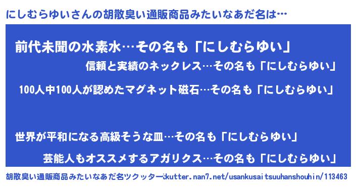 | 肩書あだ名 | 『にしむらゆい大佐』『にしむらゆい助手』 |