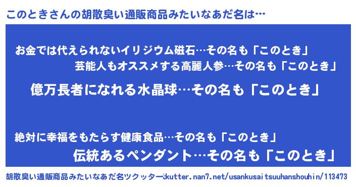 | ヒーロー風カッコイイあだ名 | 『スーパーコノトキ』『愛の使者このとき』 |