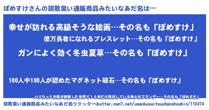 | 意味不明あだ名 | 『自称ぽめすけ』『ぽめすけフォーエバー』 |
