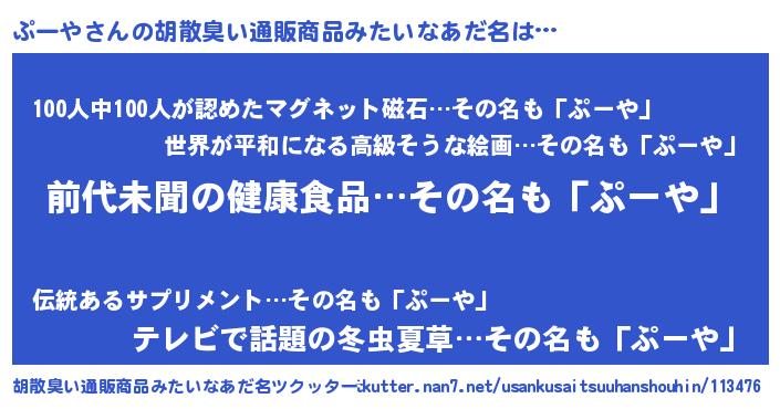 | ヒーロー風カッコイイあだ名 | 『ネオプーヤ』『友情の使者ぷーや』 |
