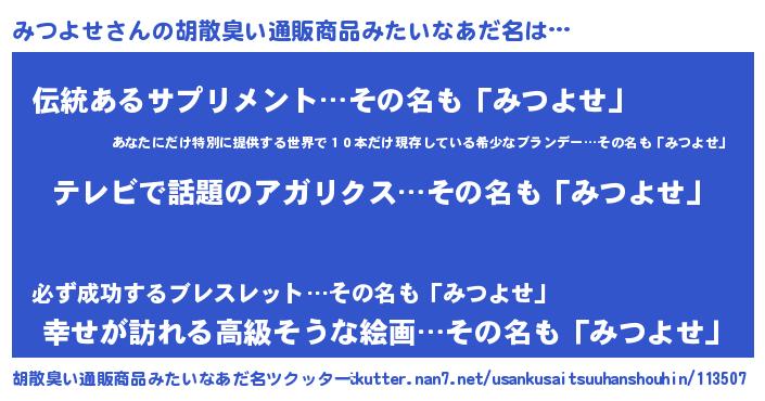 | 意味不明あだ名 | 『自称みつよせ』『みつよせフォーエバー』 |