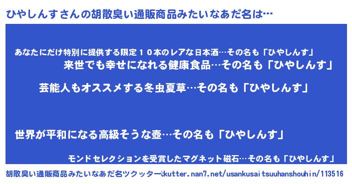 | 男性向けラノベタイトル風あだ名 | 『ひやしんす~年齢イコール彼女いない歴の魔法使い~』 |