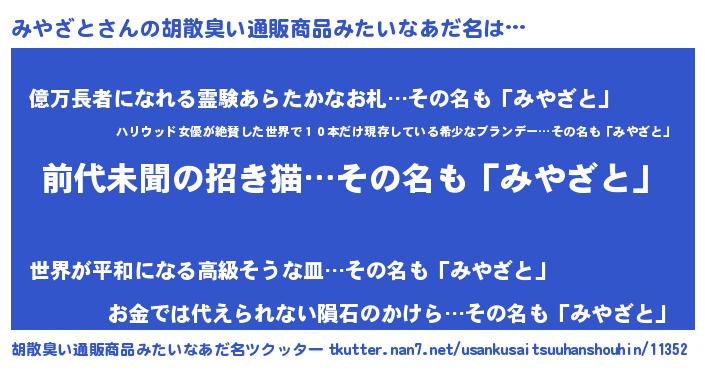ヘコむあだ名 | 『みやざと(笑)』『みやっふぃ~』 |