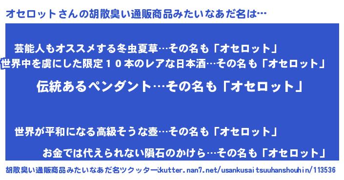 | 意味不明あだ名 | 『とにかく怪しいオセロット』 |