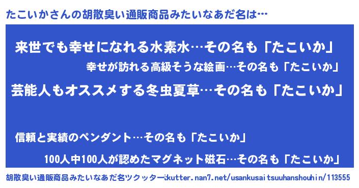 | 意味不明あだ名 | 『自称たこいか』『永久保存たこいか』 |