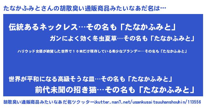 | 意味不明あだ名 | 『住所不定無職たなかふみと(74歳)』 |