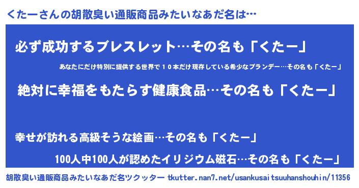 | ヘコむあだ名 | 『くたー(笑)』『くたふぇ~』『牛乳』 |