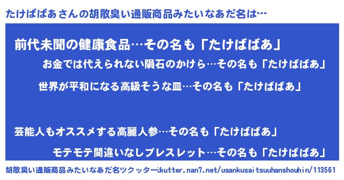 | 意味不明あだ名 | 『たけばばあフォーエバー』 |