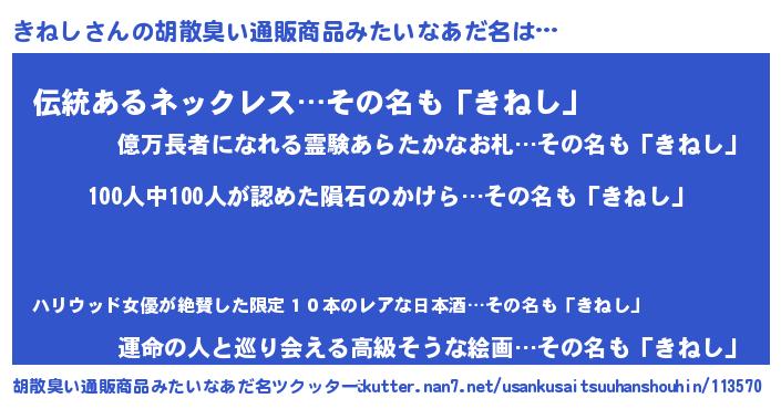 | ヒーロー風カッコイイあだ名 | 『正義の使者きねし』『幻影騎士キネ』 |