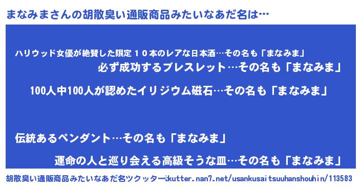 | 肩書あだ名 | 『まなみま助手』『まなみまディレクター』 |