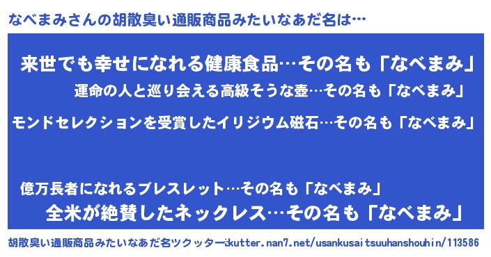 | 意味不明あだ名 | 『眠気覚ましガムなべまみ味』 |