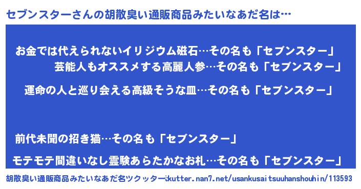 | 意味不明あだ名 | 『セブンスターフォーエバー』 |