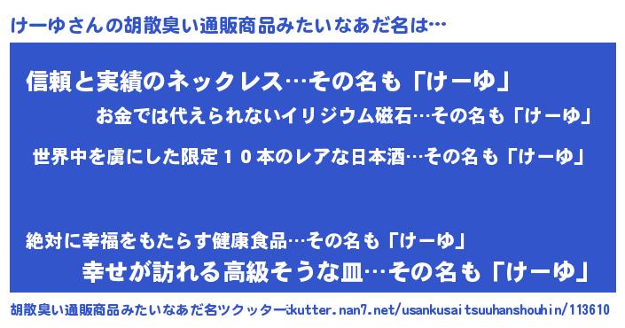 | 意味不明あだ名 | 『住所不定無職けーゆ(50歳)』 |