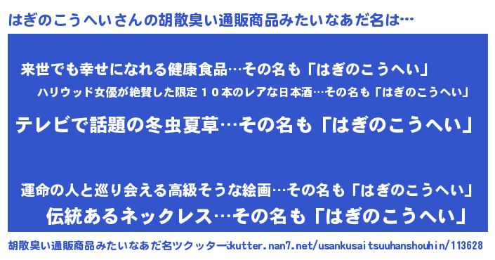 | 伝説のあだ名 | 『古より伝わる勇者はぎのこうへい』 |