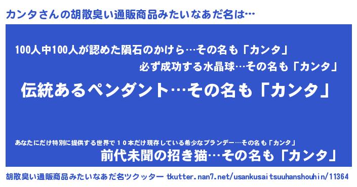 | 男性向けラノベタイトル風あだ名 | 『カンタの嫁は女の子じゃないと思った?』 |