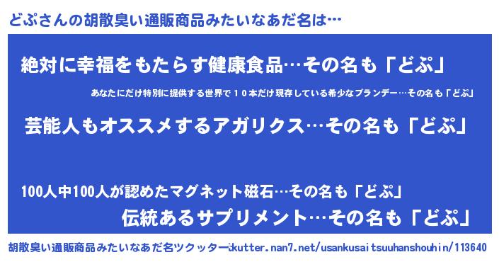 | ヘコむあだ名 | 『どぷ(笑)』『どぷ太郎』『豆乳』 |