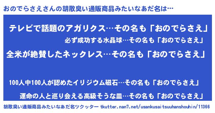| 意味不明あだ名 | 『とにかく怪しいおのでらさえ』 |