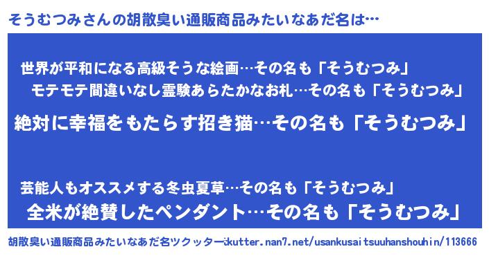 | 意味不明あだ名 | 『永久保存そうむつみ』『自称そうむつみ』 |