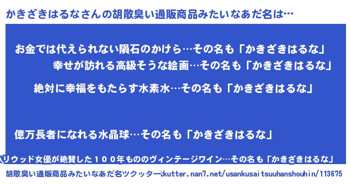 | 意味不明あだ名 | 『永久保存かきざきはるな』 |