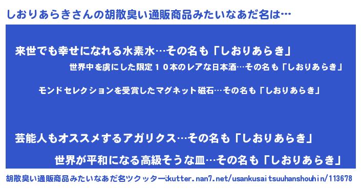 しおりあらきさんの胡散臭い通販商品みたいなあだ名をツクッター!