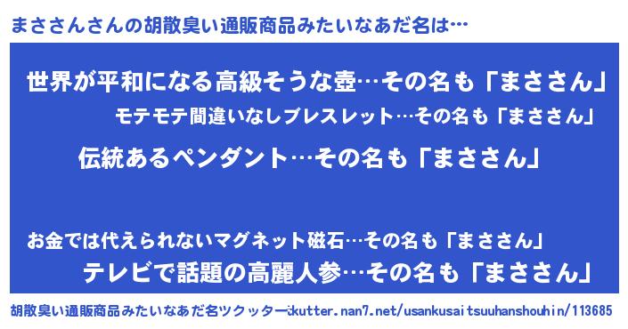 まささんさんの胡散臭い通販商品みたいなあだ名をツクッター!