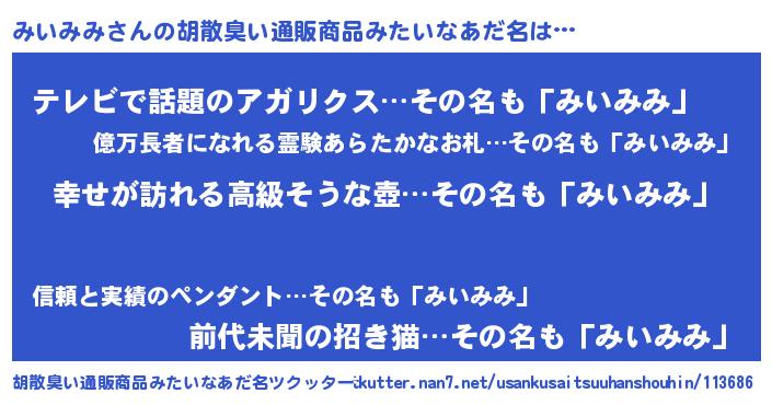 | ヘコむあだ名 | 『牛乳』『みいみみ(爆)』『みいにー』 |