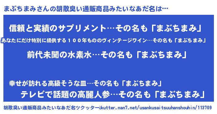 | ヘコむあだ名 | 『まぶちまみ(遠い目)』『まぶ太郎』 |