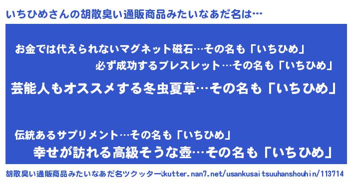 いちひめさんの胡散臭い通販商品みたいなあだ名をツクッター!