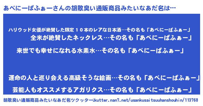| 意味不明あだ名 | 『永久保存あべにーぱふぁー』 |