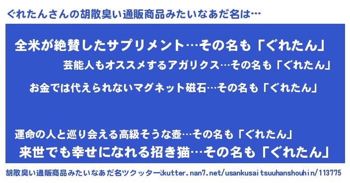 | ヘコむあだ名 | 『ぐれを』『ぐれたん(震え声)』 |