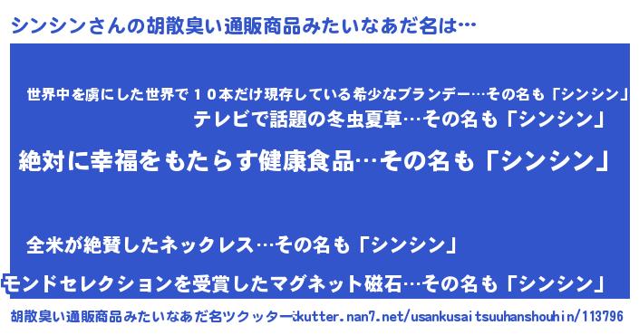 | 意味不明あだ名 | 『永久保存シンシン』『自称シンシン』 |