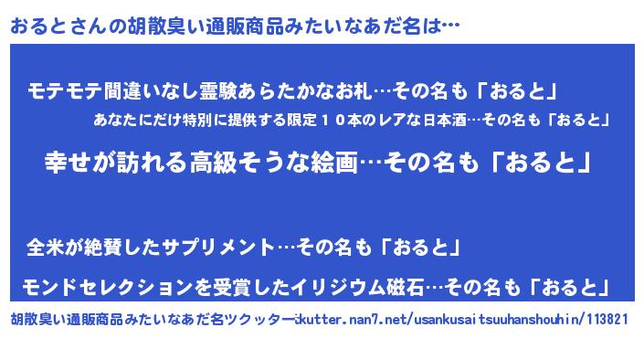 | 女子向けラノベタイトル風あだ名 | 『おるとの雑貨屋さん』 |