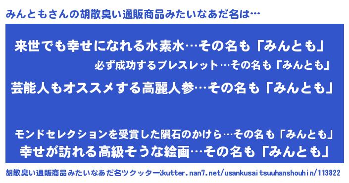 | ヘコむあだ名 | 『みんとも(小並感)』『なまこ酢』 |