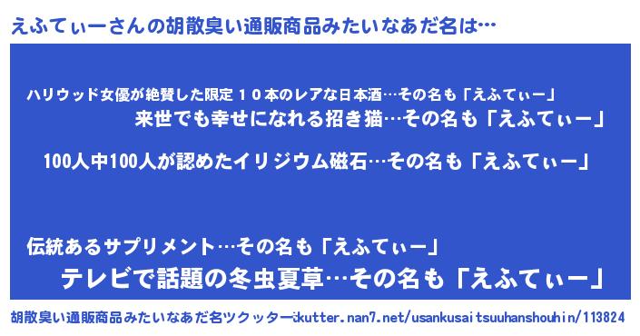 | ヘコむあだ名 | 『えふてぃー(笑)』『えふぷりん』 |