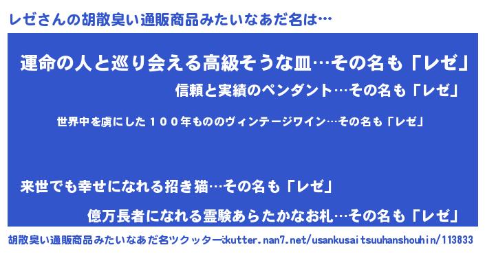 | 意味不明あだ名 | 『住所不定無職レゼ(5歳)』『ペロリンレゼ』 |