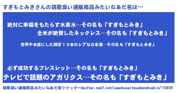 | 男性向けラノベタイトル風あだ名 | 『この素晴らしい世界にすぎもとみきを!』 |