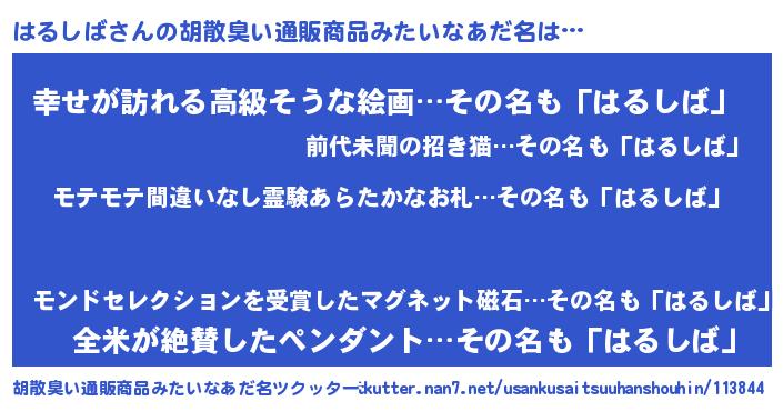 | ヘコむあだ名 | 『はるもー』『つくし』『はる太郎』 |